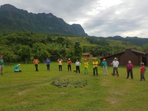 Formamos um círculo ,como de costume ,com os cajados no centro para o alongamento e recomendações da nossa guia Nati , seguidos por uma oração ,pedindo aos nossos anjos da guarda a nossa proteção e à montanha a permissão para caminhada e passagem sãos e salvos.
