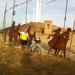 E mais, nestas comparações entre fazer o Caminho a pé ou de bicicleta, me ocorre outra situação. Em quais estações do ano é melhor para fazer um ou outro? Nos meses mais frios – novembro a fevereiro -, com risco de neve, diminui bastante o número absoluto de participantes, mas se nota uma redução significativa do percentual de ciclistas. Já nos meses de abril a setembro o percentual de ciclistas aumenta. Como pedalamos em agosto, a temperatura predominante durante o dia era acima de 30 graus centígrados, às vezes atingindo os 37 graus, apesar do ar quente ainda pedalava sem o desconforto que percebia nos peregrinos a pé, como ocorre na região das mesetas. O ciclista o faz sem desconforto extremo.